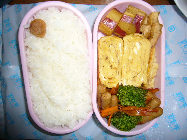 お弁当など食べ物関係のことを載せていきます。 × [PR]上記の広告は3ヶ月以上新規記事投稿のないブログに表示されています。新しい記事を書く事で広告が消えます。 午前5時半に1度目が覚めたが,まだ眠くて,後30分のつもりが,2時間寝てしまた。急いで作ったが,間に合わないので,きらきら☆のお弁当はお昼におとうが届けることになった。 |