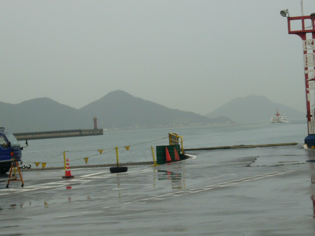 クリックしてください。→ http://masato.heartsos.jp/ 赤灯台と出て行くフェリー。 |