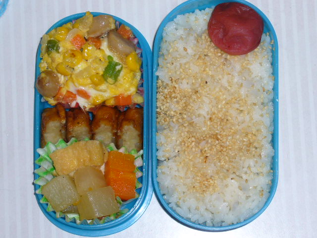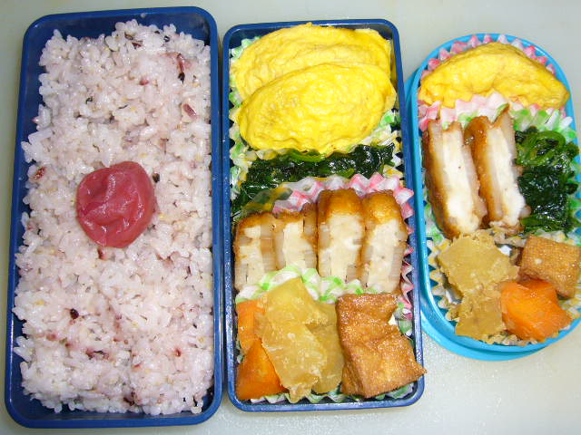 お弁当など食べ物関係のことを載せていきます。 × [PR]上記の広告は3ヶ月以上新規記事投稿のないブログに表示されています。新しい記事を書く事で広告が消えます。 かあしゃんがめんどくさくて,クーちゃんのトイレの準備をしなかったのが悪かったです。 いつも中ぐらいの火加減で玉子焼きを焼いていたが,今日はもう少し弱火にして,卵液を少しづつ出したら,くるくる巻いた玉子焼きができた。いつもはばぁっと卵液を入れていたのが失敗の元だったようだ。 きらきら☆のケーキを買ったとき,「もったいない」というパッケージでスポンジの切れ端を売っていた。200円。この前のクリームとぷっちんプリントばななで,プリンアラモードもどきができた。ゴンとおとうの分。男の料理でお皿は気にしないでくださいませ。 19日はゴンの厄日だった。時間に余裕を持っていたのが幸い。 としみたちが、よかった これで今週のお弁当はおしまい! |